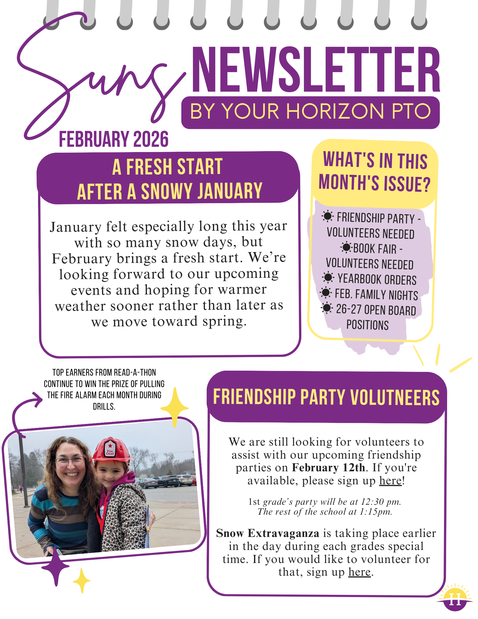 Stay up to date with all the latest news and upcoming events by your Horizon PTO.